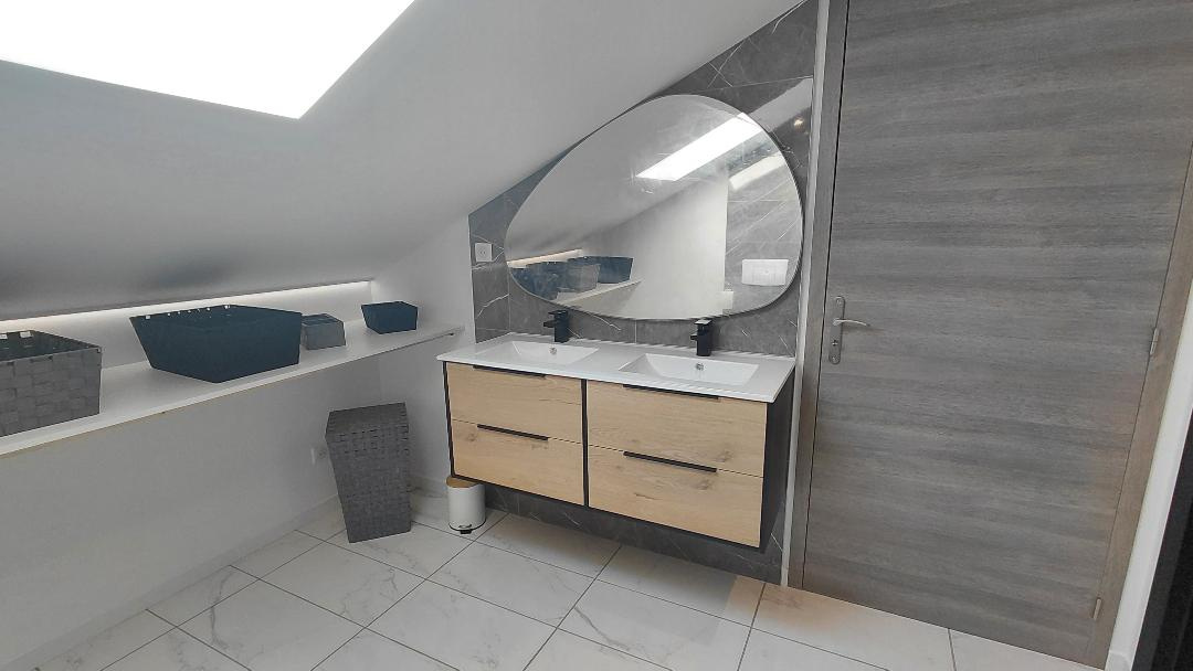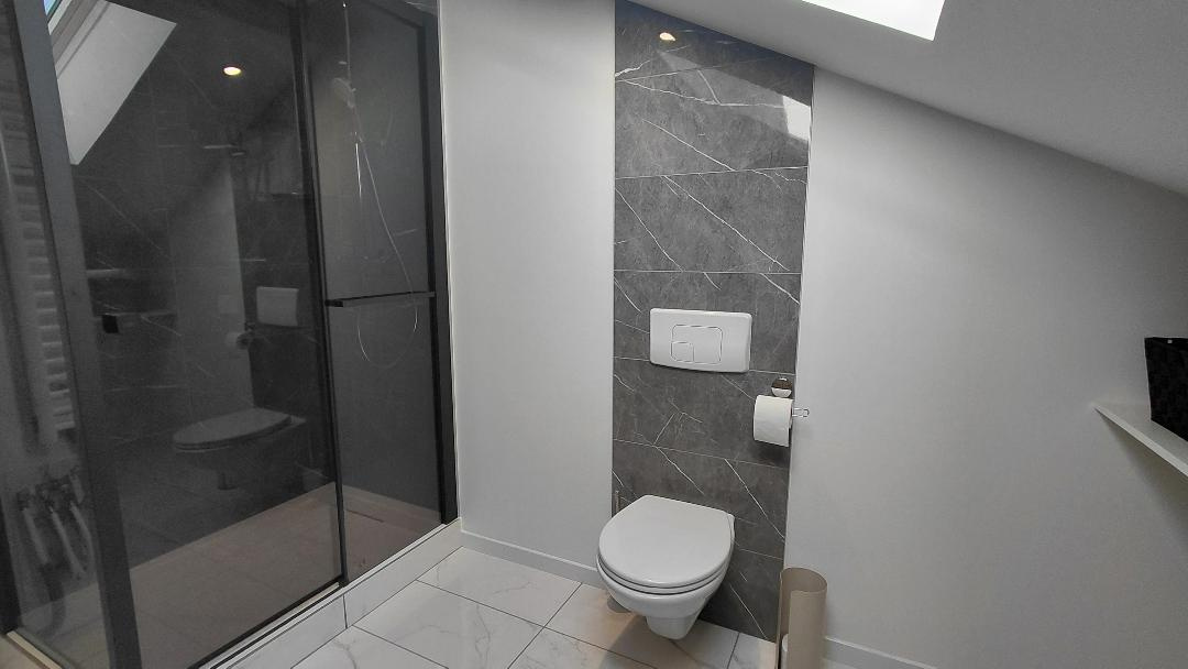 - Salle d'eau moderne comtemporaine avec coin buanderie, WC;