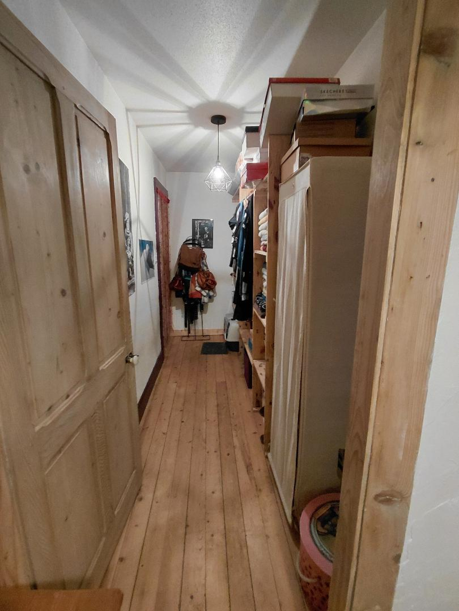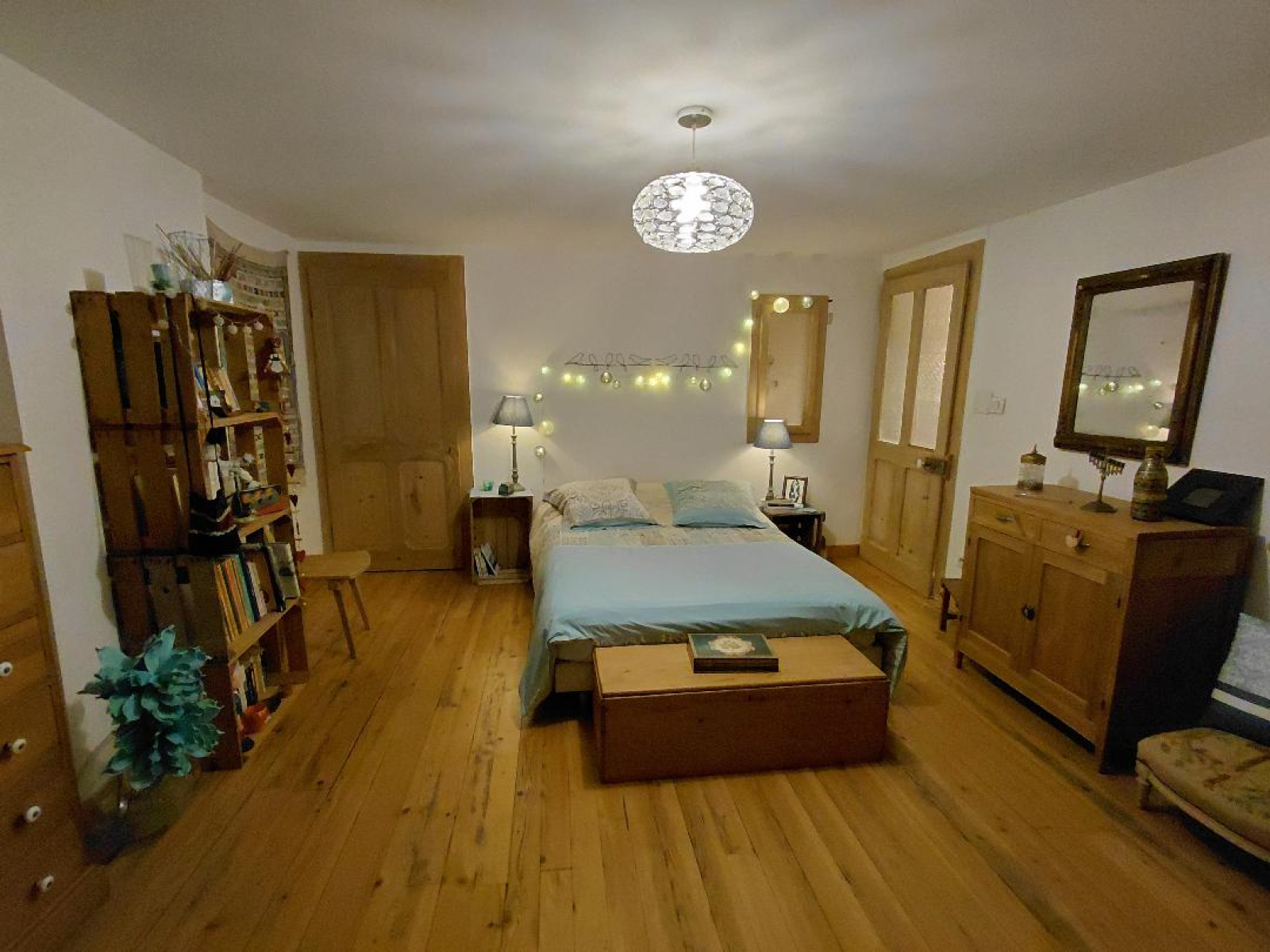 Au premier étage : un dégagement, une chambre de 25 m² avec dressing en bois, une grande chambre avec deux placards.
